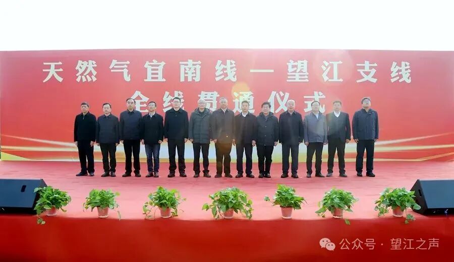 1月16日,天然气宜南线-望江支线全线贯通点火仪式顺利举行。市委副书记廖强出席并宣布天然气宜南线-望江支线全线贯通。市政协副主席、市发改委主任李文胜,安徽省徽商集团党委委员、总会计师于忠山,县委书记汪久清,县委副书记、县长朱显璋,县人大常委会主任吴梅生,县政协主席汪森,县委副书记倪文主,安徽省徽商长城能源有限公司董事长陈冬芳,市城管局副局长殷金红,县领导徐四新、方夏、王小节出席活动。